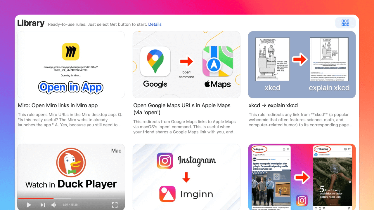 RedirectWeb ponúka jedinečné funkcie, ako sú podrobné nastavenia pravidiel, užitočná knižnica pravidiel, iCloud Sync, podpora Safari a ďalšie. Každý nástroj má však svoje výhody. Pozrite si našu porovnávaciu stránku, ktorá vám pomôže vybrať ten, ktorý najlepšie vyhovuje vašim potrebám: Porovnanie s inými nástrojmi